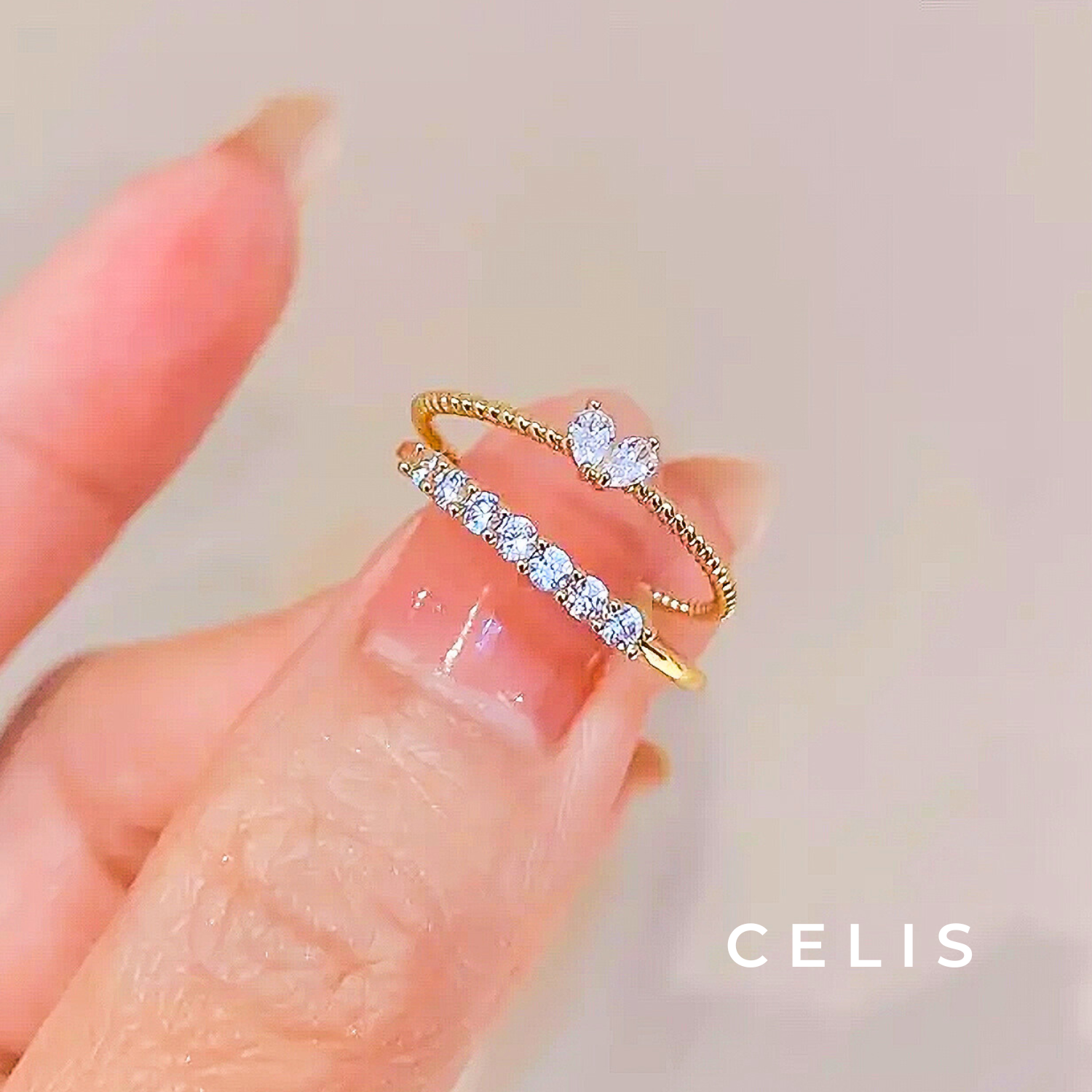 A cute stack ring with heart-shaped zirconia. This 2-piece set allows you to enjoy various expressions depending on the combination.