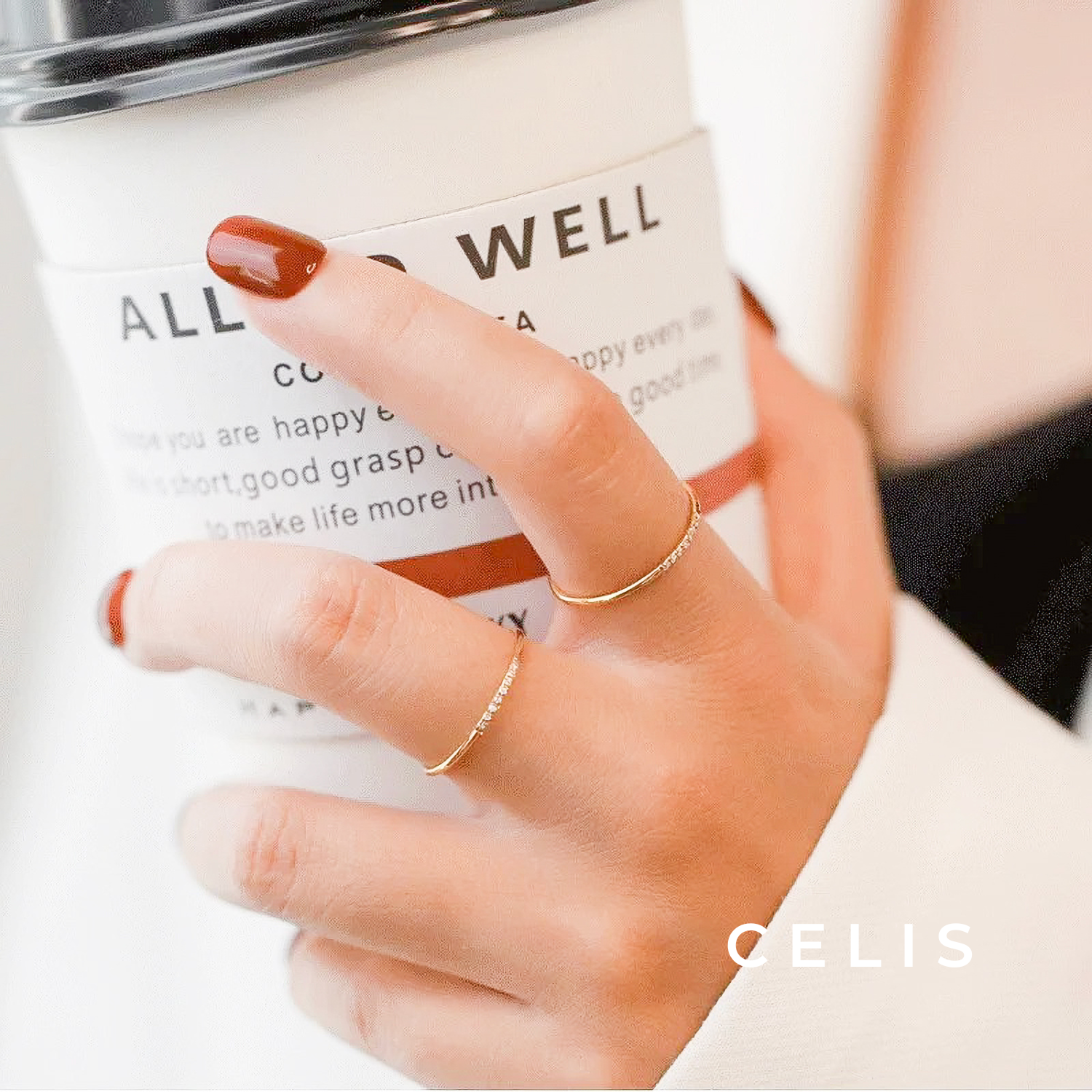 A minimalist design ring set with elegantly sparkling zirconia. The delicate lines beautifully decorate your fingertips, making it the perfect accessory for any occasion.