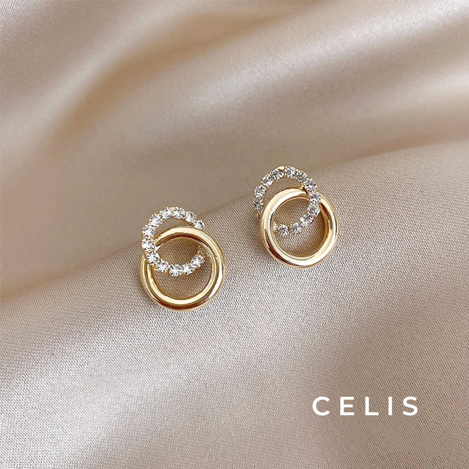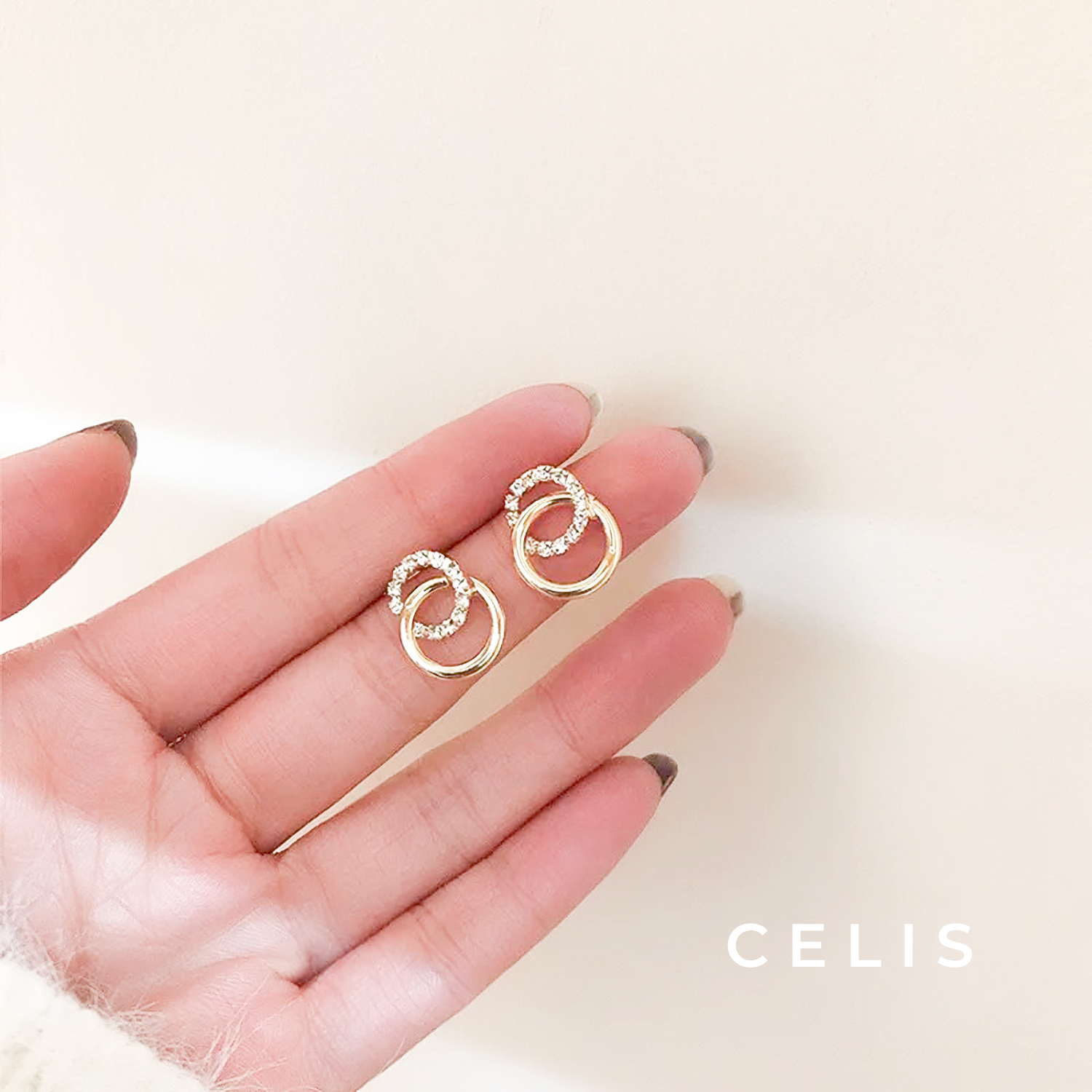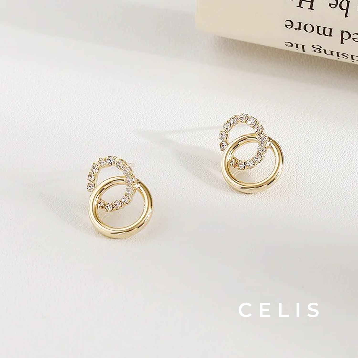 Elegant twin circle earrings with beautifully sparkling zirconia.