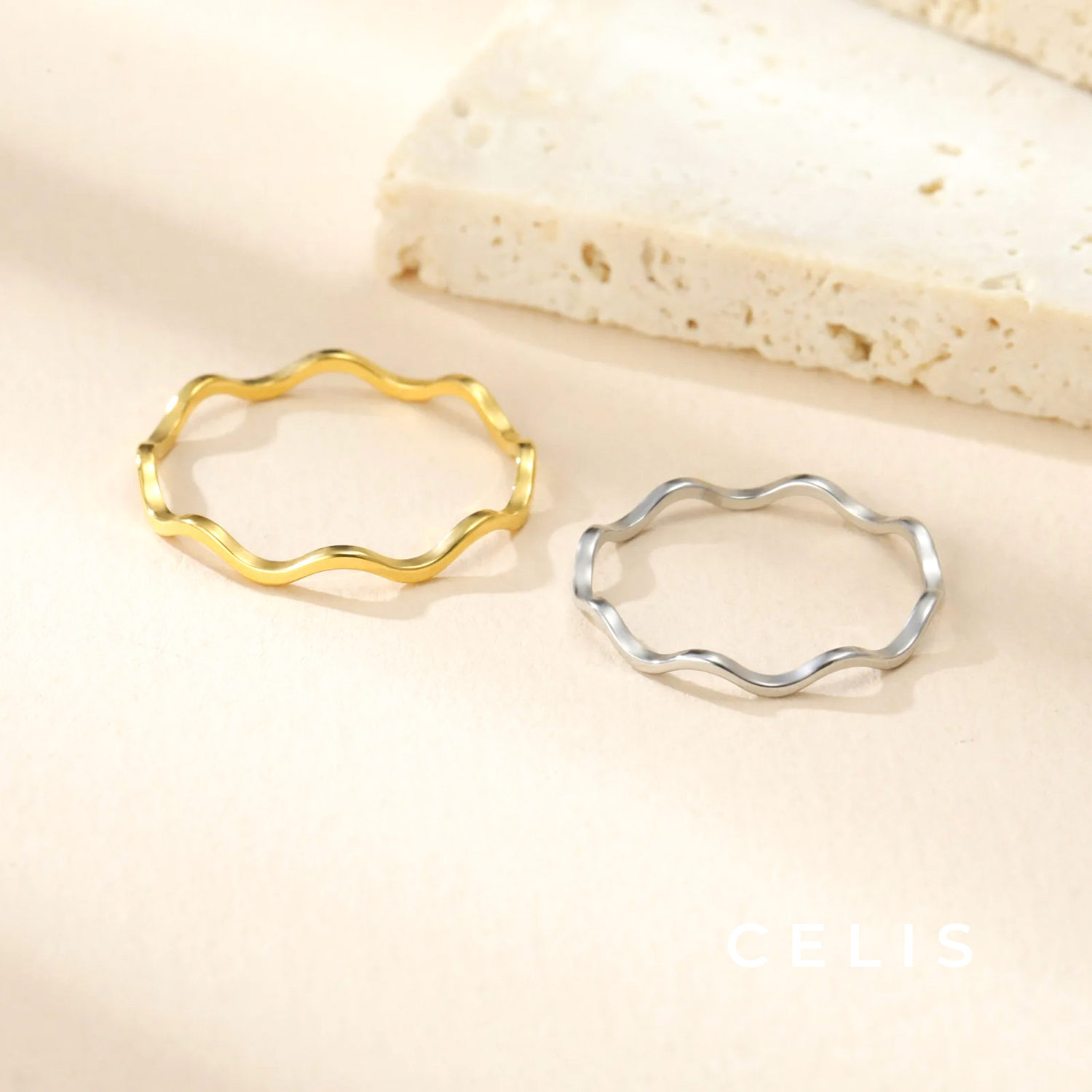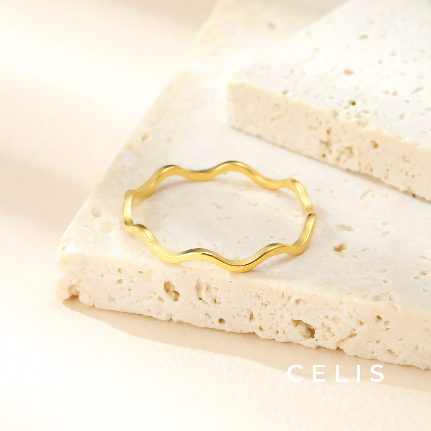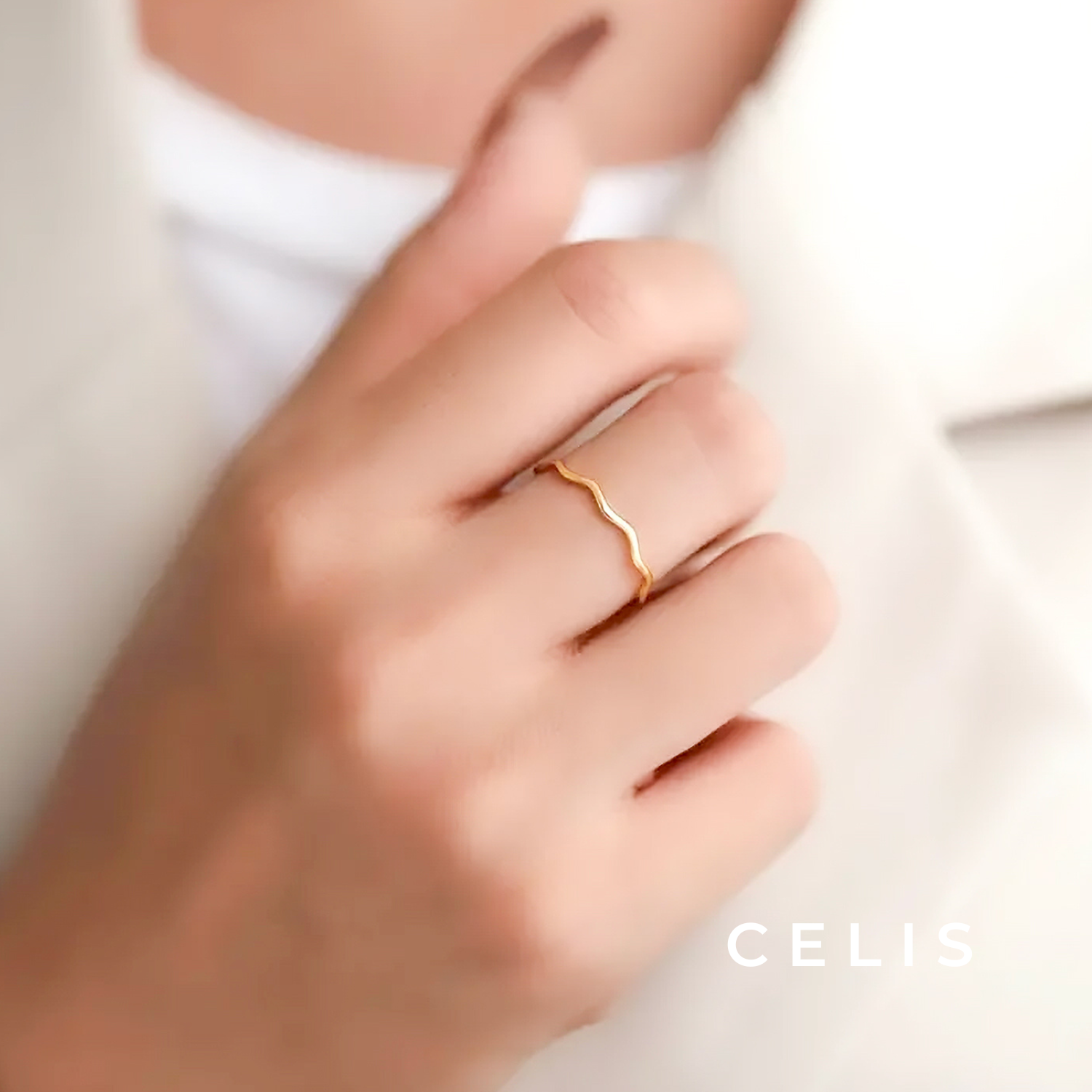 Minimal wave ring with a sophisticated design. The flowing wave lines shine beautifully on your fingertips, giving it a simple yet impressive presence.