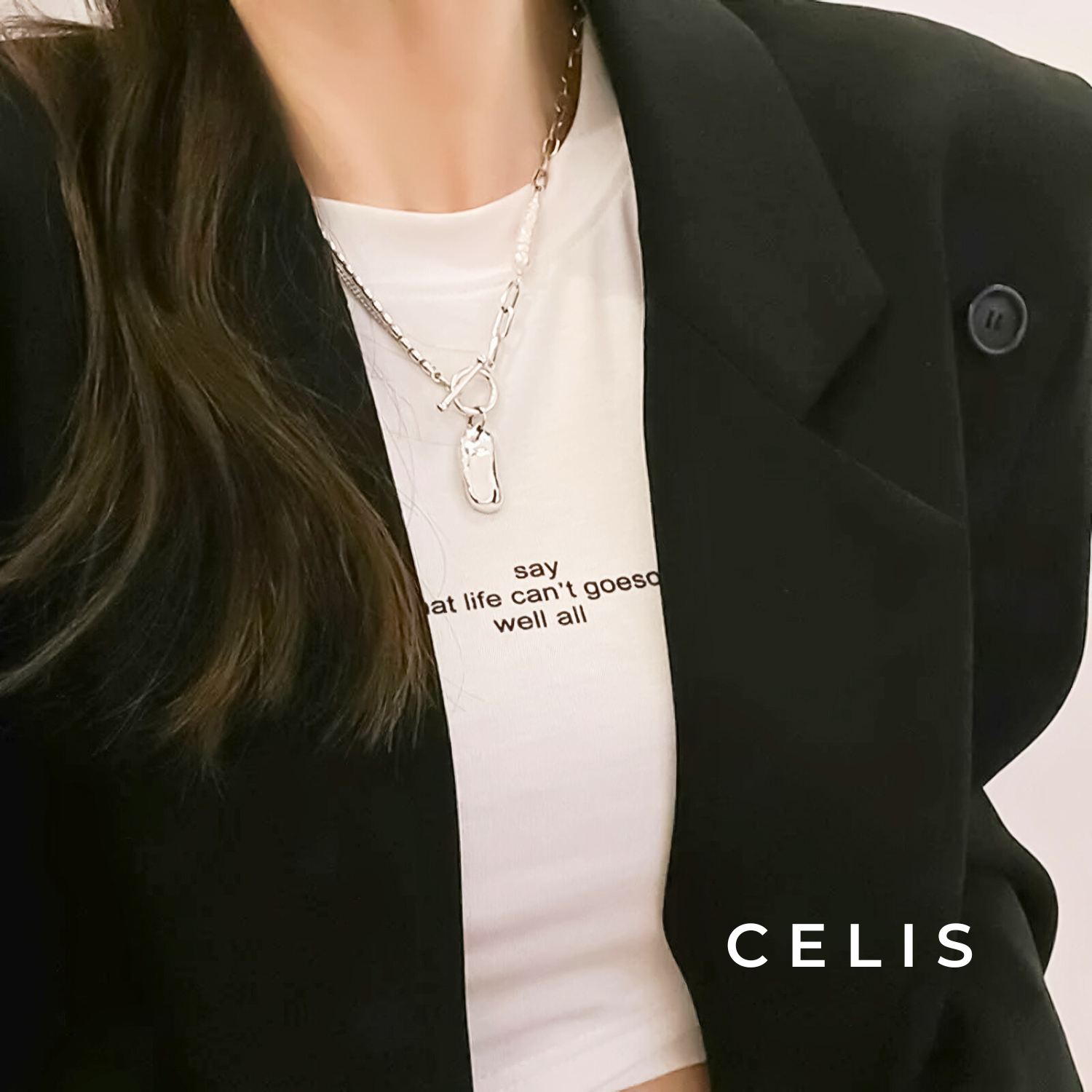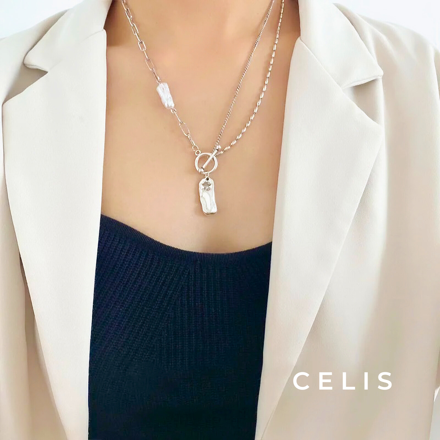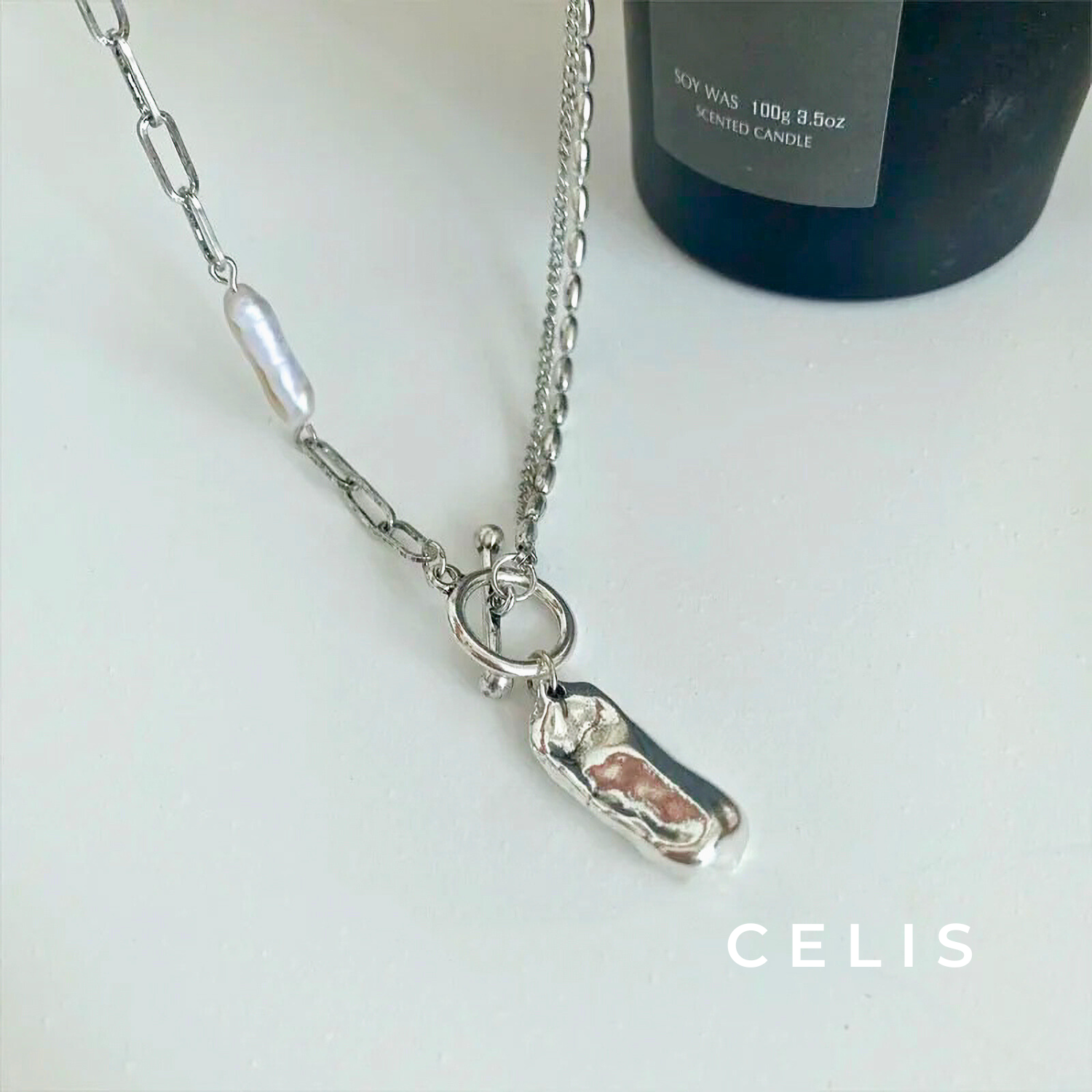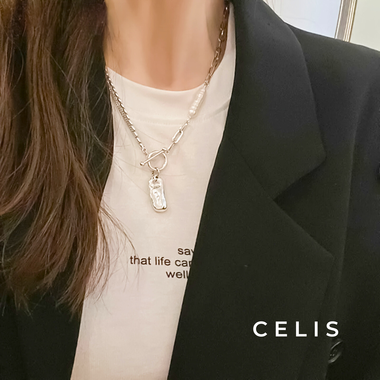 A necklace with a slightly strong design and a gentle atmosphere of pearls.
