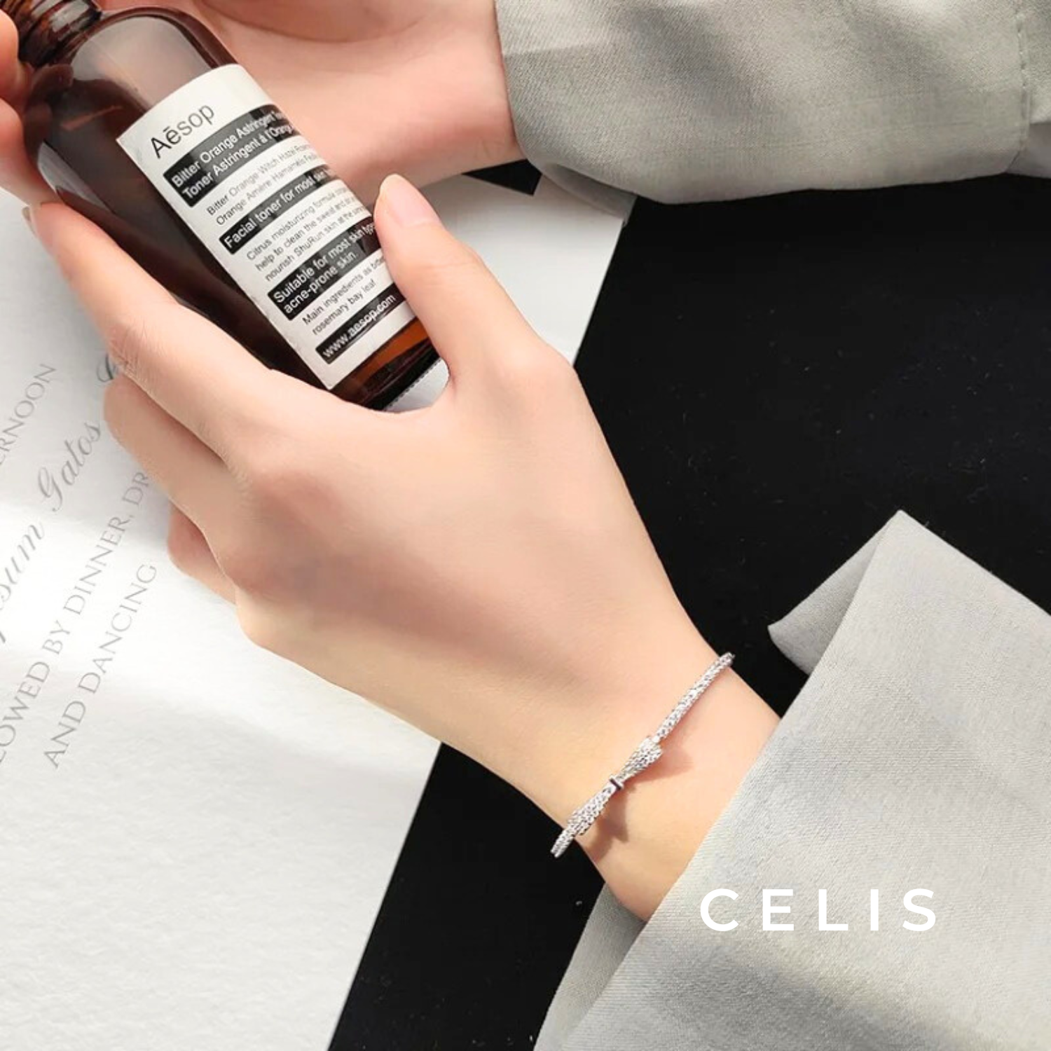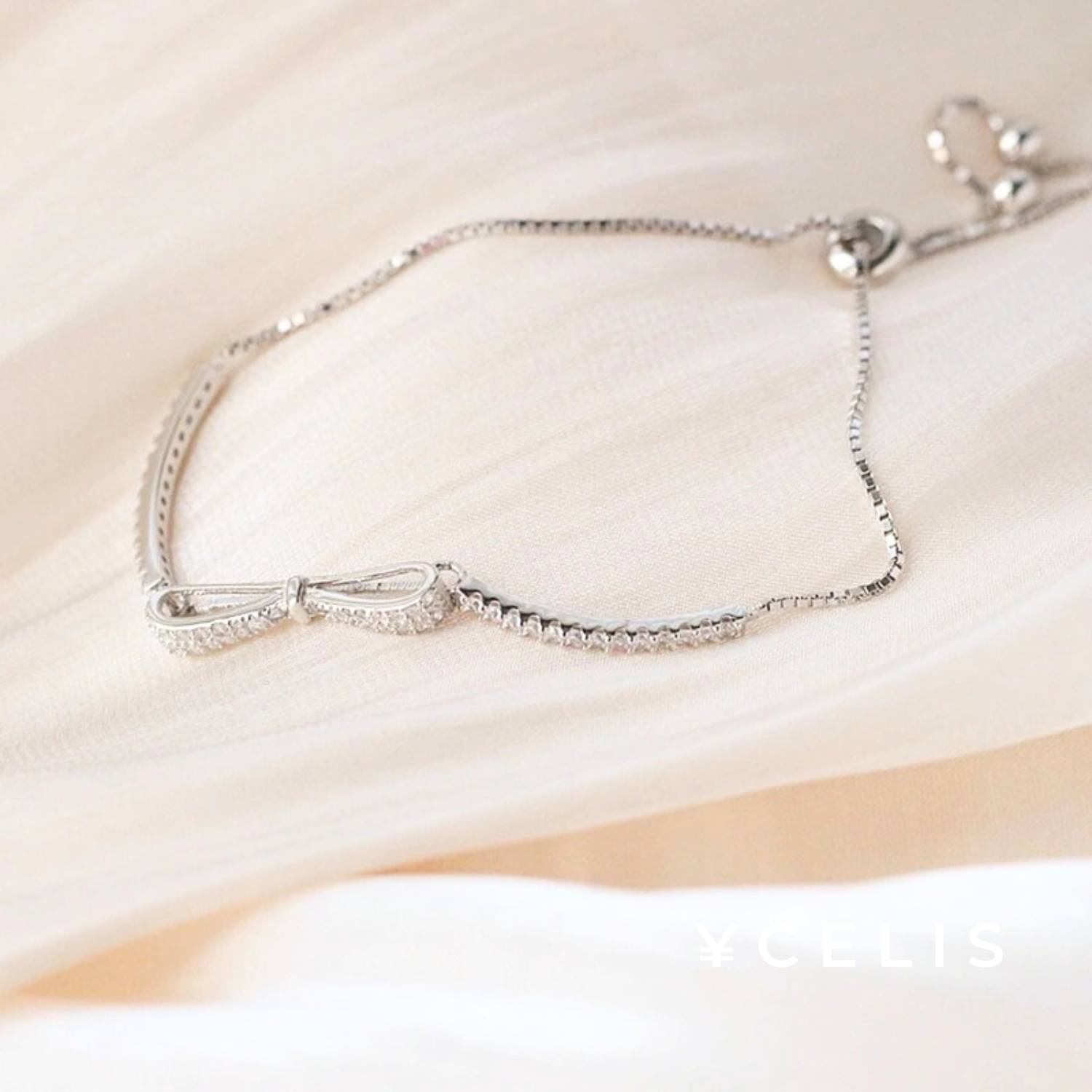 A bracelet that combines zirconia with an elegant shine and a cute ribbon.