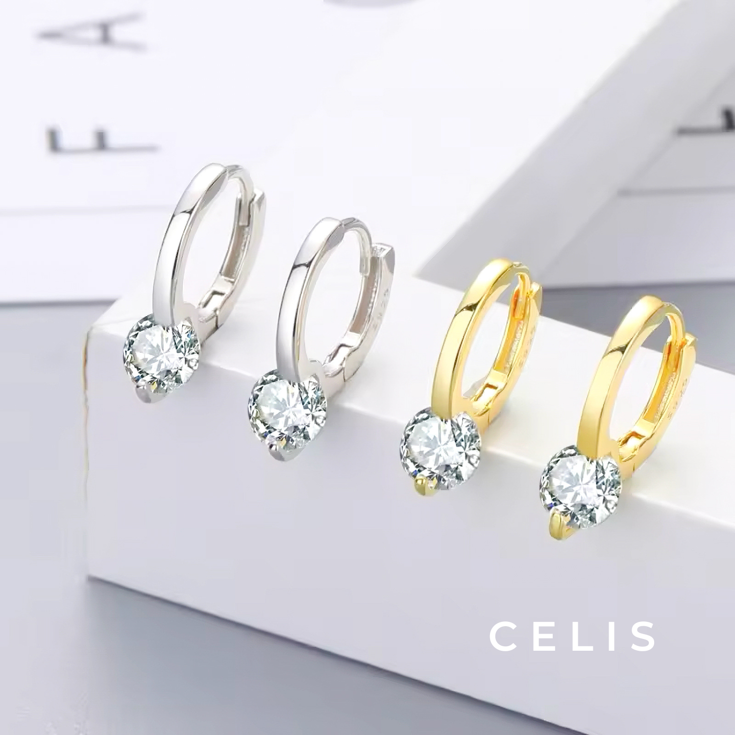 A single piece of zirconia is set in basic hoop earrings that are easy to match.